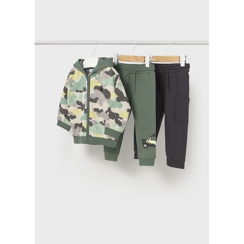 2836 Trening din 3 piese (hanorac model camuflaj si doua perechi de pantaloni de trening) pentru baieti, Mayoral.