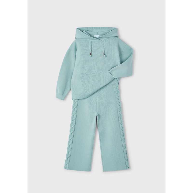 4552M Compleu tricotat pentru fete, format din pantaloni lungi si bluza cu gluga.
