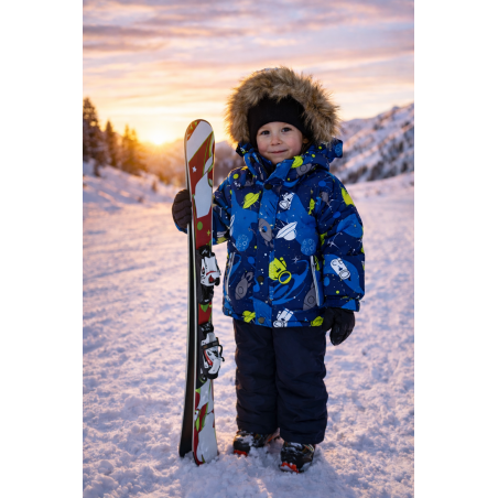 7707CH Costum de schi din doua piese, print alien, pentru baieti.