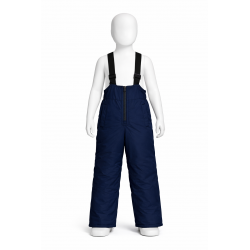 Pantalonii sunt tip salopeta cu talie elastica, au bretele ajustabile si sunt vatuiti. Au doua buzunare laterale pe partea frontala si inchidere cu fermoar.