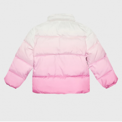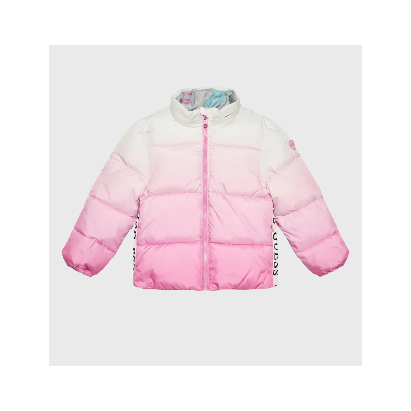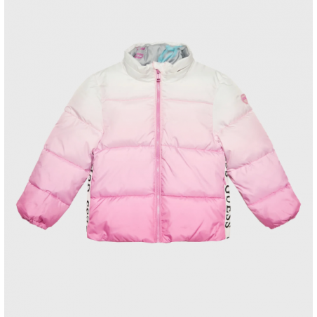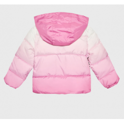 K3RL00 Geaca matlasata pentru fete cu gluga detasabila, degrade roz-alb, Guess.