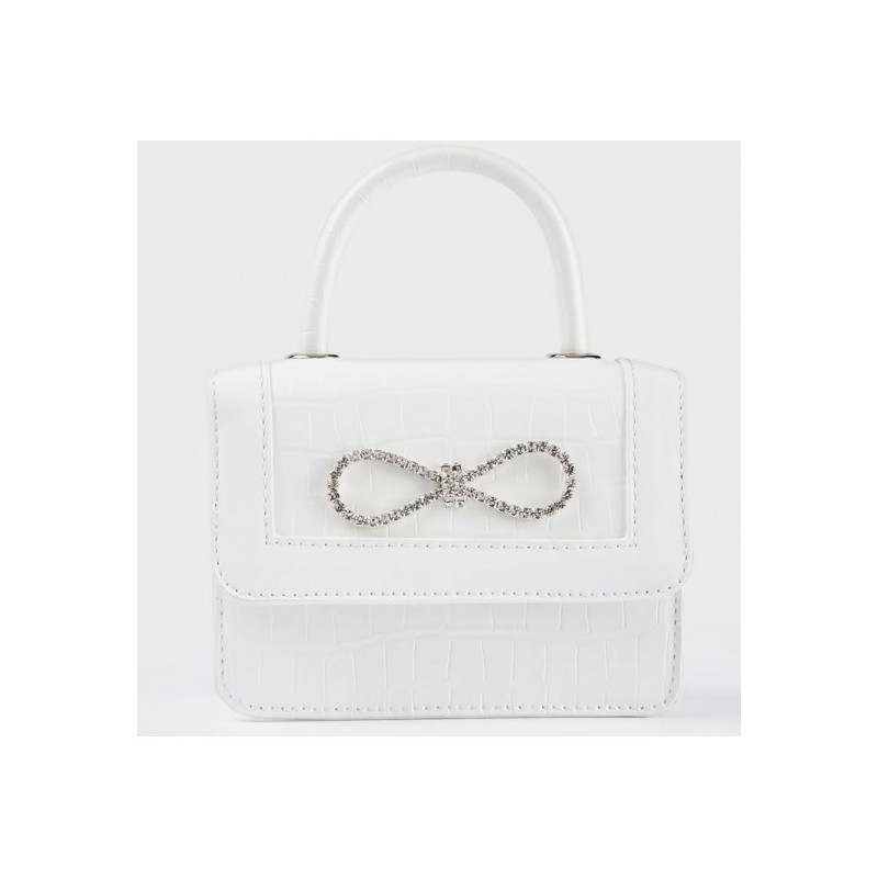 Detalii: un maner in partea de sus, aplicatie cu logo metalic, inchidere cu clapa