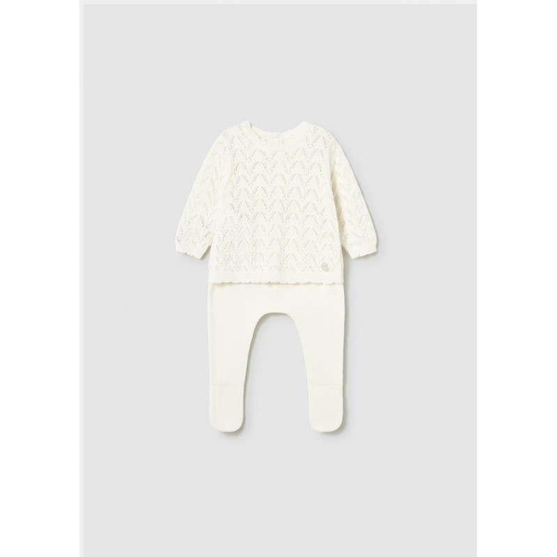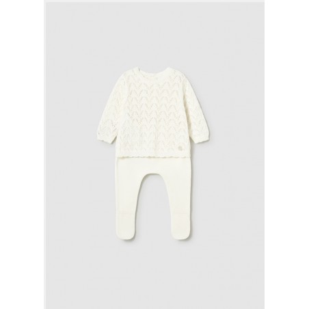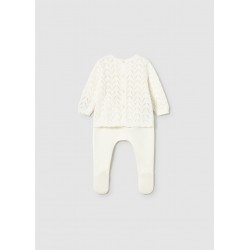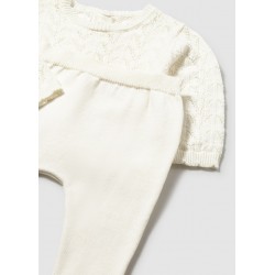 1594M Compleu tricotat pentru bebelusi, format din pulover si pantaloni cu botosei, culoare ecru, Mayoral.