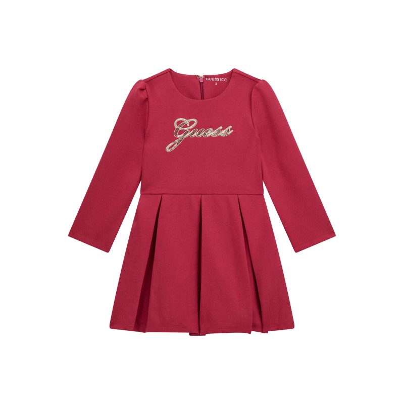 K4BK00 Rochie pentru fete, Guess, rosu, cu logo din paiete.