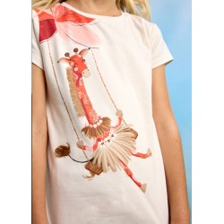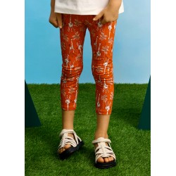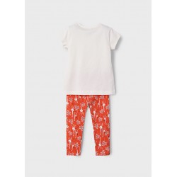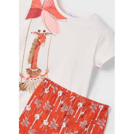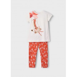 3713 Compleu pentru fete, Mayoral, format din colanti lungi portocalii si tricou alb cu imprimeu girafa.