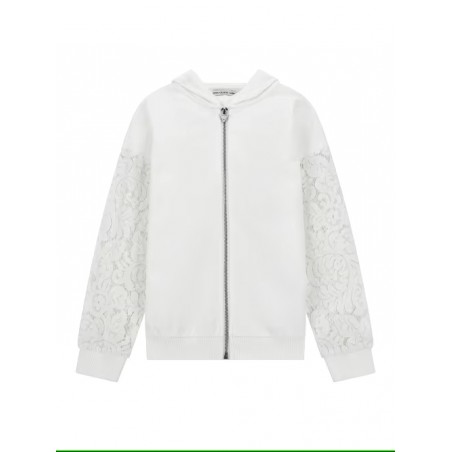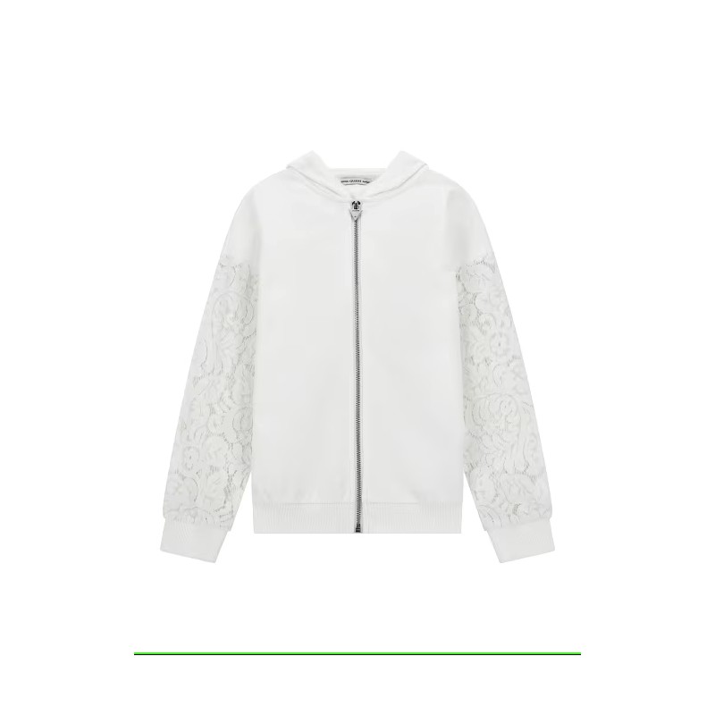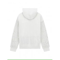 J4RQ06 Hanorac cu gluga, maneci brodate, bumbac, marca Guess.