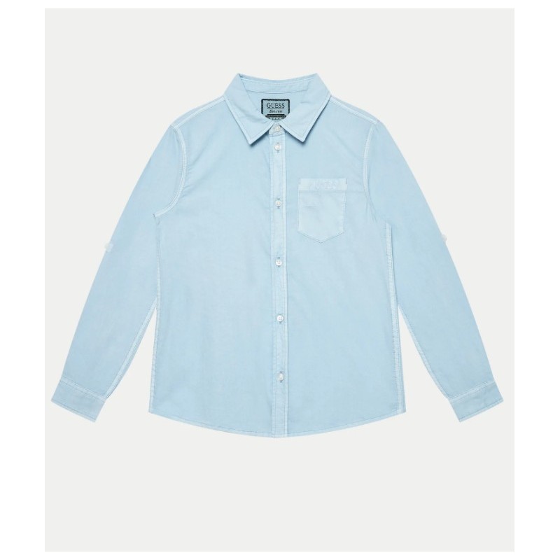 L4YH00 GUESS - Camasa cu maneca lunga, albastru deschis, cu buzunar la piept