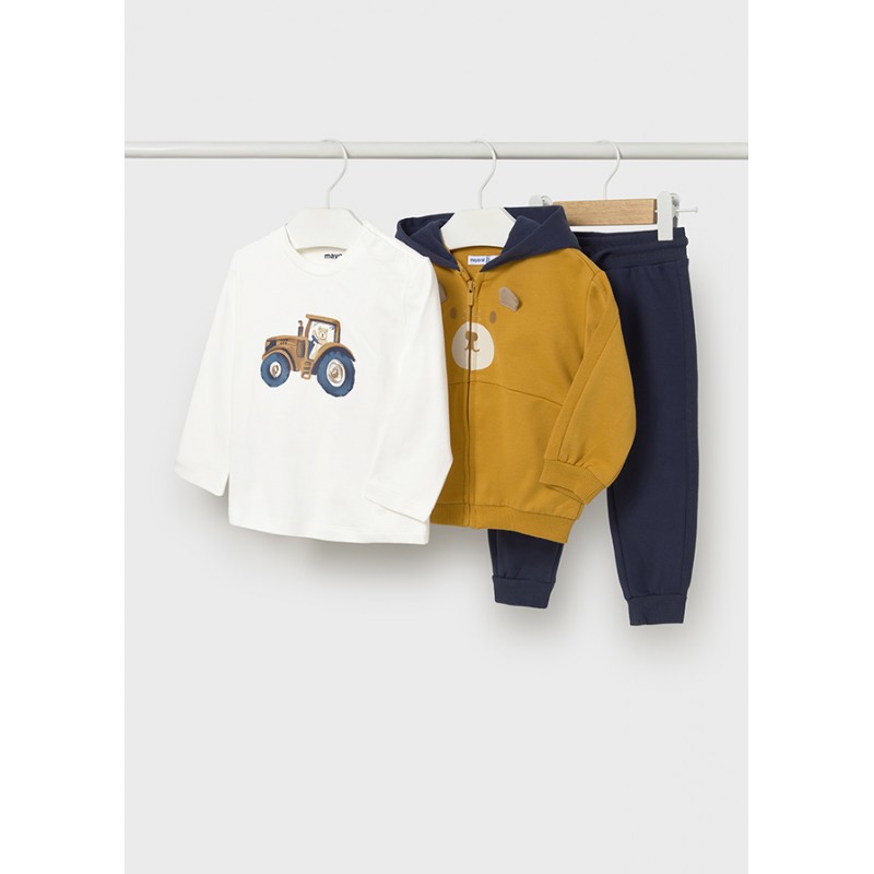 2840M Trening din 3 piese (hanorac, bluza cu maneca lunga, pantaloni) pentru baieti, Mayoral. Tricoul are capse pe umeri.
