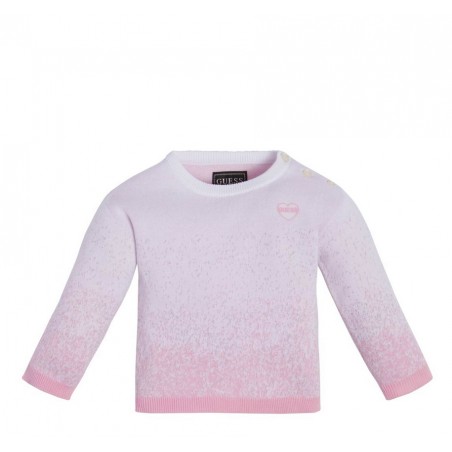 Acest pulover pentru fetite de la Guess este realizat din 90% bumbac si 10% poliester.