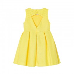 Acesta este o rochie eleganta galbena pentru copii, special creata pentru a se potrivi micilor domnisoare. Rochia prezinta o croiala simpla cu maneca scurta, cu un accesoriu floral in talie care adauga o nota de stil. Are un material catifelat, asigurand o tenta de lux. Aceasta rochie se poate asorta cu o palarie supradimensionata si o pereche de sandale, pentru a crea o tinuta perfecta pentru acelasi eveniment special.