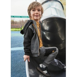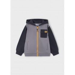 - Hanorac cu maneca lunga pentru baieti, cu guler cu gluga si inchidere centrala cu fermoar. Design cu multiple buzunare.