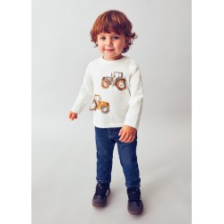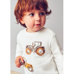 2069M Tricou cu maneca lunga pentru baieti, alb cu print tractor, Mayoral. Tricoul are capse la umar.