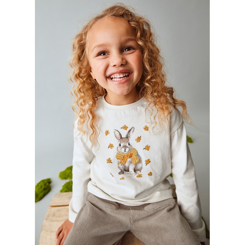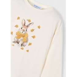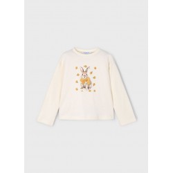 4009M Tricou cu maneca lunga pentru fete, Mayoral. Culoare crem, print iepure.