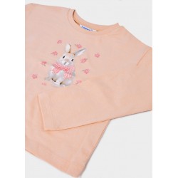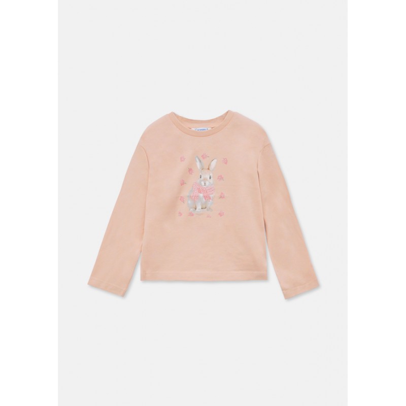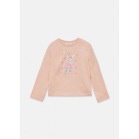 4009M Tricou cu maneca lunga pentru fete, Mayoral. Culoare roz pudra, print iepure.