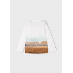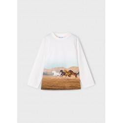 4094M Tricou cu maneca lunga pentru baieti, Mayoral, alb, imprimeu cai.